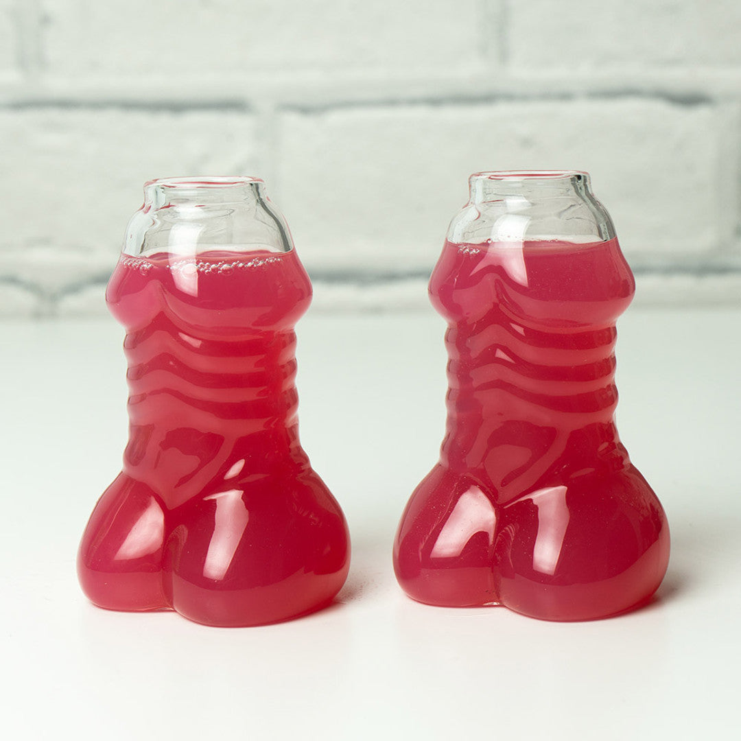 Willy Shot Glasses. Fill them with your favourite shot and get ready for some laughs! This set includes two 60ml willy-shaped shot glasses, perfect for adding a touch of humour to any gathering. Whether you're looking for a fun gift, a joke present, or just a way to lighten the mood, these shot glasses are sure to be a hit.